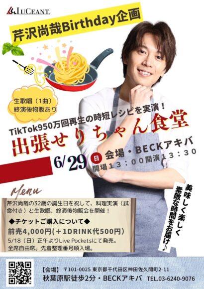 芹沢尚哉 Birthday企画 出張せりちゃん食堂 開催決定